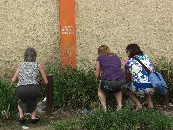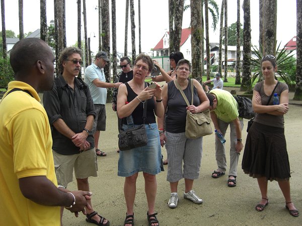 | Na het fort hebben we onze weg vervolgd langs de oever van de rivier, waar ’s avonds verliefde stelletjes afspreken. Via deze route kwamen we uiteindelijk terecht op het plein van de onafhankelijkheid. Één van de beruchtste bewoners van het plein was een plantage-eigenares, genaamd Susanna du Plessis. Volgens verhalen sneed zij uit jaloezie de linkerborst van een slavin af. Ook heeft zij volgens de overlevering het kindje van een slavin verdronken, omdat het teveel huilde. | |