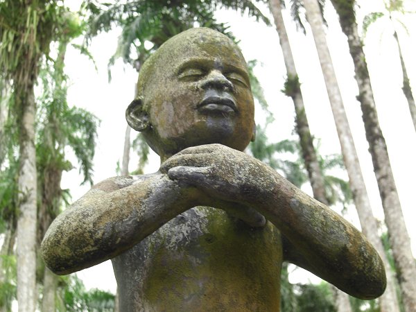 | Vervolgens kwamen wij langs een beeld van ‘Moeder Suriname’ met haar vijf kinderen. De vijf kinderen symboliseren de vijf grootste bevolkingsgroepen van Suriname: Creolen, Hindoestanen, Chinezen, Javanen en Indianen. Ieder jaar legt de president of zijn vrouw op Moederdag een bloemstuk bij dit monument. | |
