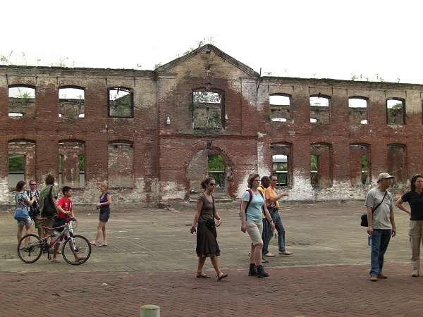 | Even laten kwamen wij aan bij het oudste gedeelte van Paramaribo, dat sinds 2002 op de Unesco wereld erfgoedlijst staat. Dit deel van de stad bestaat uit allerlei houten gebouwen. Deze houten gebouwen hadden wel een stenen fundering. Deze stenen werden door de schepen uit Europa meegenomen als ballast. Ieder schip moest verplicht een bepaalde hoeveelheid stenen meenemen en geen water als ballast, wat in die tijd gebruikelijk was. | |