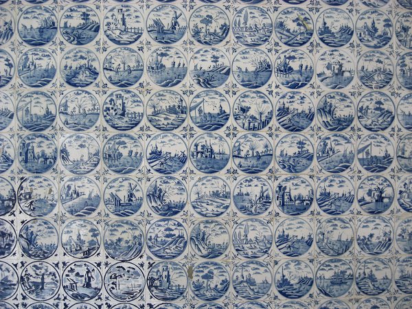 | Bij de sloop van een oud huis werden dozen vol oude Delfts Blauwe tegels aangetroffen die in het Fort Zeelandia verwerkt zijn. | |