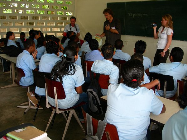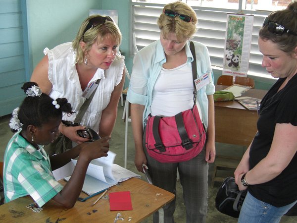 We werden toegezongen door het schoolkoor, gedirigeerd door één van de leerlingen. De rest van de leerlingen stonden op de schoolgalerij en het schoolplein. Het was met één woord indrukwekkend en iedereen was er stil van. Mevrouw Chiquita Gaddum-Dawson leidde ons rond langs de verschillende klassen. Deze school is een paar jaar geleden opgeknapt en daardoor had de school een frisse uitstraling. Gerard voelde zich meteen zo thuis dat hij een les aardrijkskunde van de docent “overnam” en de leerlingen vroeg naar hun kennis van Nederland.