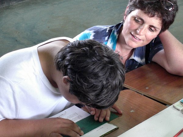 Elke maand is er een maandsluiting waar iedereen aan mee doet, elke klas verzorgd dan een optreden. De school werkt ontwikkelingsgericht. De taalmethode die gebruikt wordt is taalleesland. Op de school werken naast de leerkrachten ook een intern begeleider die tegelijkertijd ook ICT’er is en een orthopedagoog. Elke maand is er een leerlingenbespreking en een teamvergadering. Verder werken er; een conciërge, administratief medewerker en een schoonmaker. De leerkrachten krijgen een beter salaris (10 á 15% meer dan op een openbare school) en de secundaire arbeidsvoorwaarden zijn beter (ziektekosten-verzekering, vakantiegeld, en sinds kort ook een 13e maand. Er worden ook hogere eisen gesteld aan het personeel doordat er regelmatig bijscholingen worden gegeven. Dit gebeurt ’s middags na school of op zaterdag! Het was een indrukwekkende ochtend en we reden vol met indrukken terug naar ons hotel. Verslag van Pauline en Lidi. |