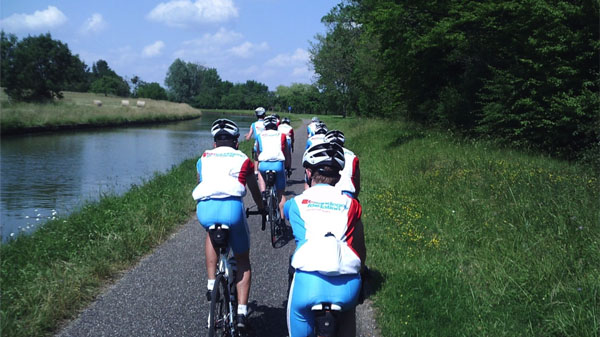 Woensdag 11 juni 2014 – Fietsdag 2: Barr – Mittersheim Vandaag moesten we weer om 07:00 ons bed uit. We werden voorzien van een fantastisch ontbijt. Rond de klok van 08.30 uur stapten we onze fietsen weer op, nadat ze uitvoerig weer gekeurd en nagekeken waren. Toen we het dorp uit reden begonnen we gelijk met klimmen. Tijdens de eerste kilometers kwamen door de typische Franse dorpjes heen. Schitterend om te zien, nadat we gisteren door allerlei wijnvelden hadden gereden. In de dorpjes was het hoogteverschil heel erg groot. Als we een straatje in reden, moest je weer heel erg klimmen en dan had je daarna weer een leuke afdaling. Vaak moest je daarna weer heel hard in de ankers, omdat je weer een weg moest oversteken. Na de eerste 50 KM fietsen stopten wij bij een leuk dorpje voor een kerkje. We werden voorzien met water, sommige kochten nog wat bij de supermarkt omdat de trek al aan begon te slaan. Na de stop kregen we een heuvelig stukje met veel lange dalingen en natuurlijk een paar slopende klimmetjes. Toen we eindelijk bij de stop aankwamen hadden we allemaal heel erg honger. Gelukkig stonden daar onze volgauto´s met de begeleiding klaar om ons te voorzien van onze lunch, gelletjes, repen, bananen, appels, AA drink, Aquarius en ga zo maar door. Perfect gewoon. Iedereen had hier heel erg zin in. De gelletje, energy repen, appels en bananen vlogen erdoorheen dit kwam ook omdat de stop pas was bij 90km dus er waren er een hoop die door hun energie waren. Na de stop kon iedereen er weer hard tegen aan. Bij de laatste 25KM werden we geconfronteerd met een hoop klimmetjes en verkeerde routes (maar liefst 3 keer! Na een reeks slechte paden hebben we ook hele mooie paden gehad. We hebben zelfs hele stukken langs hele prachtige kanalen kunnen fietsen. Dit fietste heel erg lekker (hiervan zie je hierboven een plaatje). Toen wij aankwamen bij de camping stonden de tentjes al klaar. Na een snelle pauze nam iedereen een duik in het meer op maar liefst 20 meter van ons kamp. Het water in het meer was perfect voor een goede afkoeling na de tocht. Nu worden de dagtaken uitgevoerd door iedereen en gaan we dadelijk genieten van de zoveelste heerlijke maaltijd van onze topkok Mario. De mannen van Sparta Nijkerk maken flink gebruik van onze fysio Tom, want die liggen te kreunen en te steunen op de masagebank. Hanneke is bezig met het wassen van de wielertenue´s, terwijl Henk de groentes aan het snijden is. Niko is de reis van morgen aan het voorbereiden om te bekijken in welke plaatsen we het beste de lunchpauzes kunnen doen. Dennis heeft alle tenten weer op de juiste plekken neergezet, zodat het kamp er weer super uitziet. Maureen en Amber zijn heerlijke herstel drankjes aan het maken voor het hele team, de ochtend afwas wordt gedaan door Hidde en Twan, oftewel iedereen is volop bezig |