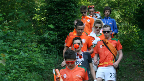 Maandag 9 juni 2014 – Aankomst Hunigue Deze enerverende dag hebben wij beleefd als uitdagend, lang feest. Al na 10 kilometer was de kort broeken-pauze in verband met het verschrikkelijke weer. Door de ontzettende pinkster-drukte waren de eerste parkeerplaatsen niet voor ons toegewezen. Onderweg zaten sommige fanatiekelingen met hun blote gat naar buiten te gapen. De conversaties over de walkietalkies waren weer hilarisch. Na een paar keer verkeerd gereden te zijn en een paar pauzes, kwamen wij aan in het o zo mooie Zwitserse Basel. Wij werden hier verwelkomd door een grote groep enthousiaste supporters en een prachtig zonnetje. Toen we aankwamen hadden de begeleiders de Rijn nog niet gezien, of de sporters lagen er al in. Ongelofelijk koud, maar dat was het waard met dit warme weer. |