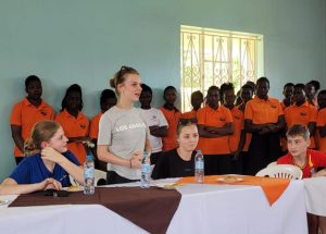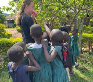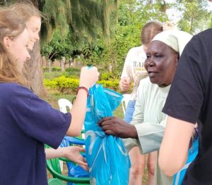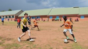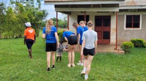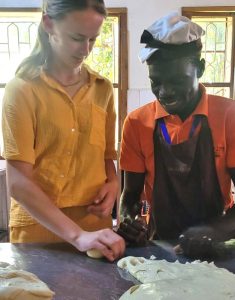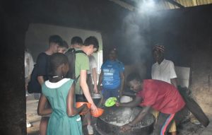 De school, de bakkerij en het huis waar we slapen staan allemaal in dezelfde straat. Vanaf de school liepen we even via ons huis weer naar de bakkerij om te helpen met de voorbereidingen voor het avondeten. Verder werd er weer veel geknuffeld en gedanst. Op het eind was er nog een leuke volleybalwedstrijd met de groep en een aantal Oegandezen.