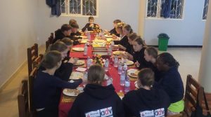 We hadden 4 kamers in Jinja, om 8 uur stonden wij klaar voor het ontbijt. Hiervoor hadden sommige hun tas al ingepakt, gedouched of nog lekker gelegen.