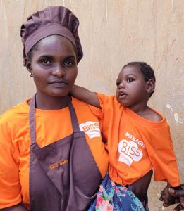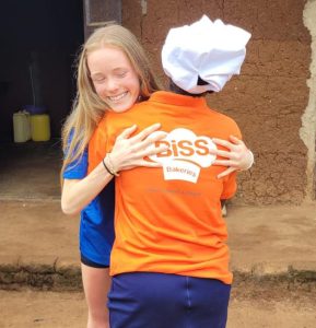 Toen hadden we nog koekjes gekocht bij de BISS bakkerij om uit te delen aan de kinderen om de bakkerij heen.