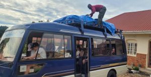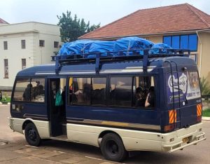 Toen we aan land waren moesten we weer de bus in, zodat we verder kunnen rijden naar het centrum van Jinja.