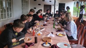 Nadat we ons kamers hebben bekeken was het om 19uur tijd om te eten. We aten spaghetti.