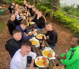 Snel hierna gingen we met zijn allen eten. Patat met een heerlijke kipburger en wat te drinken.