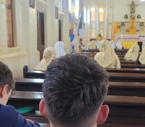 Vanochtend werden we rond half 7 wakker en vertrokken om kwart voor 7 richting de katholieke kerk. Hier werd gezongen en gebeden en we deden allemaal mee.