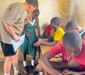 Op de school gingen we lesjes geven aan verschillende klassen. De groep was in Nederland al verdeeld en is er aan 6 klassen les gegeven.