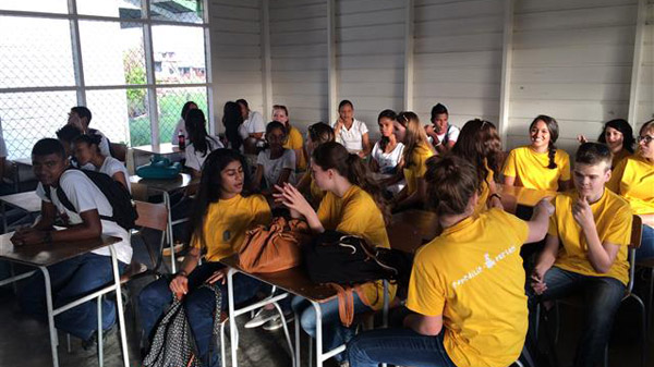 We zaten vanmorgen al vroeg aan het ontbijt, omdat het busje om 6:50 al voor het resort stond. Na een halfuurtje in het busje kwamen we bij de Anton Resida school aan. We vonden het wel een beetje spannend omdat dit de eerste keer kennis maken was met de Surinaamse leerlingen. Na dat de vlag hing en we kennis hadden gemaakt gingen we met alle leerlingen in het busje naar een waterbedrijf. Daar kregen we een rondleiding van ongeveer een uur. Toen dat we daar klaar waren gingen we ook nog met de hele groep naar een sap fabriek. Ook daar kregen we een korte rondleiding. Na dit uitje gingen we weer terug naar de Anton Resida school en namen we afscheid.