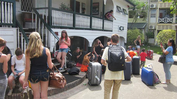 om 17.00 Surinaamse tijd kwamen we daar aan. iedereen was heel erg moe van de reis. toen we onze koffers hadden opgehaald gingen we met de hele groep met de bus naar het Eco Resort in Paramaribo. toen we onze kamers toegewezen hadden kregen, gingen we gezellig met z´n alle nog even wat eten. na deze lange dag was iedereen heel erg moe en gingen we naar onze hotelkamer om te gaan slapen.