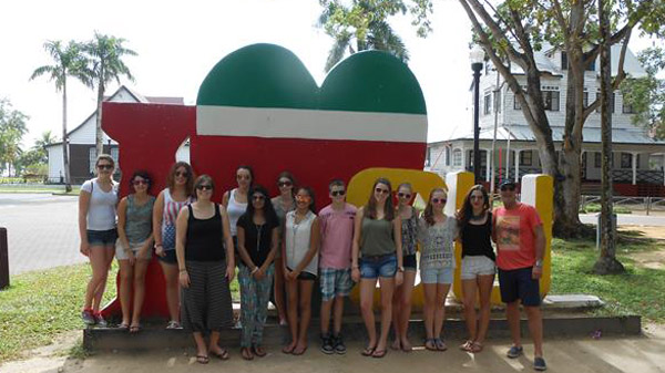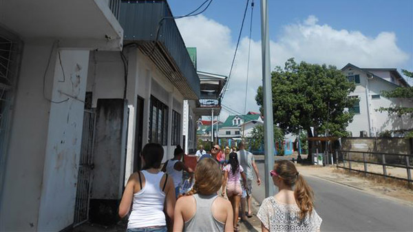 Het begon al vroeg want we gingen met ze alle José uitzwaaien, helaas redden niet iedereen het om 8 uur er te zijn. Na een poosje zaten we met ze alle aan het ontbijt, het ontbijt was erg lekker! Om kwart voor 10 hadden we afgesproken voor het hotel. We liepen gezamelijk naar Fort Zeelandia. Daarvoor stond het bekende “I love SU” bord waar we natuurlijk met ze alle op de foto gingen. We gingen naar Fort Zeelandia naar binnen en kregen een zeer interessante rondleiding over hoe het vroeger er aan toe ging in het fort. De man vertelde er heel veel over en vertelde alles wat hij wist heel boeiend. Na ruim 1 uur stond Mevrouw Mila ons op te vangen voor een speurtocht in Paramaribo. Helaas hebben we hem niet helemaal kunnen afmaken vanwege te lang in de zon en de warmte. De vrouw vertelde ook enkele dingen over bepaalde gebouwen en historische gebeurtenissen die in Suriname gebeurd zijn. Aangekomen in het hotel hadden we wat vrije tijd om lekker te zwemmen. Half 6 hadden we afgesproken in de ontbijtzaal met alle scholen om de week door te bespreken, daarna hadden we nog een kwartiertje om ons klaar te maken voor het avondeten bij de chinees. Nu zitten we gezellig met ze alle buiten de dag na te bespreken en over hoe we het morgen gaan doen.
